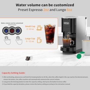 From capsules to grounds, our coffee rituals have never been more versatile. This machine adapts seamlessly to our preferences, whether we’re brewing a quick K-Cup, indulging in a rich Nespresso capsule, or experimenting with freshly ground coffee. The 4-in-1 compatibility ensures we’re never limited to one type of coffee, making it a true all-rounder for every coffee lover. Plus, the ability to use ESE pods and other compatible capsules adds another layer of convenience. The customizable water volume feature is a game-changer—whether we crave a bold espresso or a lungo to savor,the single and double cup buttons let us tailor each brew to perfection. For those who enjoy larger servings, holding the button allows us to set our ideal volume, ensuring every cup is just the way we like it.
